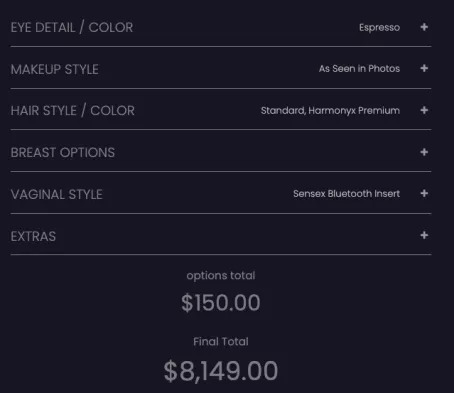 在Realdoll的购物页面中,你可以根据自己的喜好打造自己所想要的机器人外形,定制“她”的每一个部位,包括性器官。