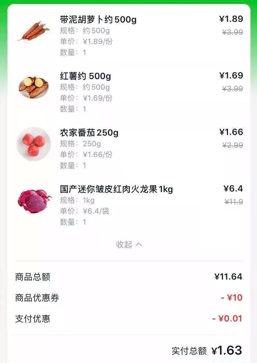 我同栋楼一邻居还曾沾沾自喜地在群里炫耀她在电商平台上买菜的战果: