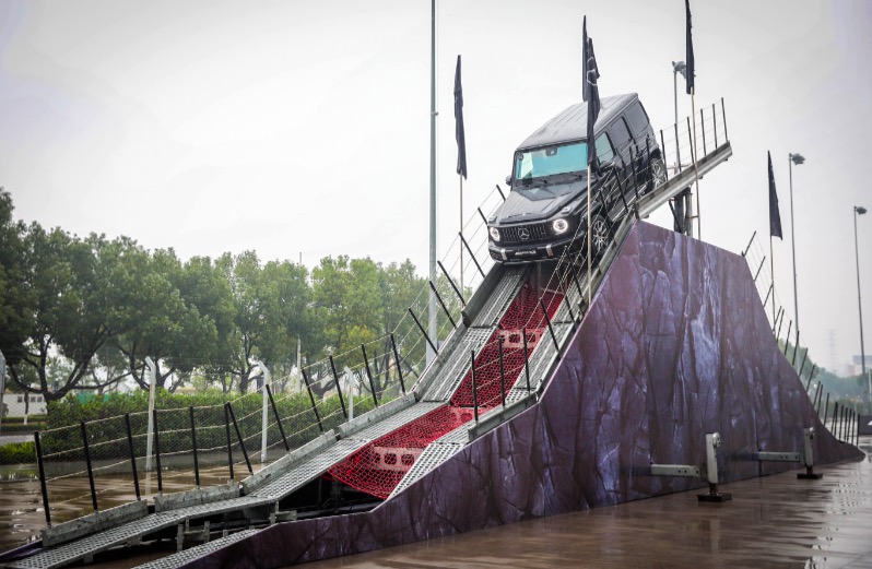 相比之下,G63轻点油门就爆发出强大动力的积极姿态,反而不如G350来得应对自如。但即便如此,稳住油门、把正方向,这台车仍能不费力地通过交叉轴项目。