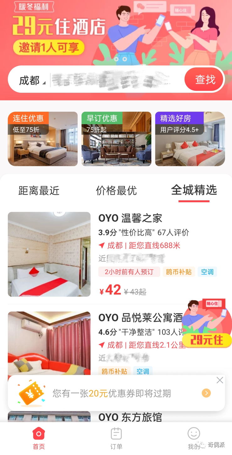 去年5月30日,OYO酒店在成都开发布会,宣布进入“OYO酒店2.0”时代,大量地推员进入各个中小酒店,以保底承诺说服酒店业主加盟,提醒酒店业主趁势抓住行业红利期,吴峥回忆,当时成都地区大约有200多家酒店加盟,他也是其中一家。