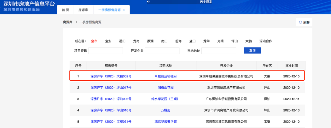 深圳市房地产信息平台公示卓越蔚蓝铂樾府(备案名:卓越蔚蓝铂樾府)已获批预售: