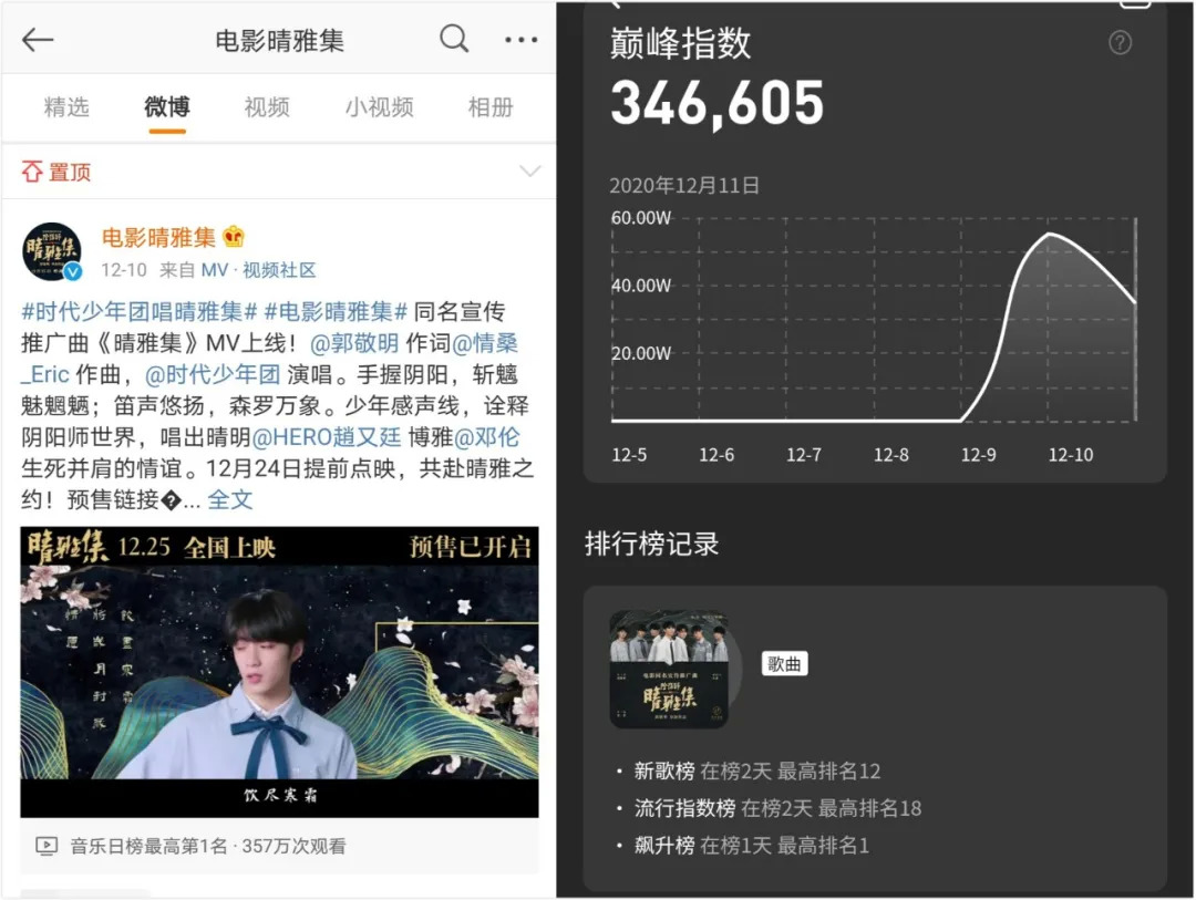 时代少年团演唱《晴雅集》同名宣传推广曲及相关数据