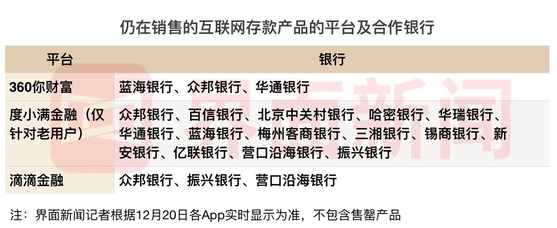 与此同时,界面新闻记者还了解到,在此前,银行与互联网金融平台合作存款产品,多为提前支取靠档计息产品,该类产品被监管定性为不合规,并在2019年底遭到严监管。