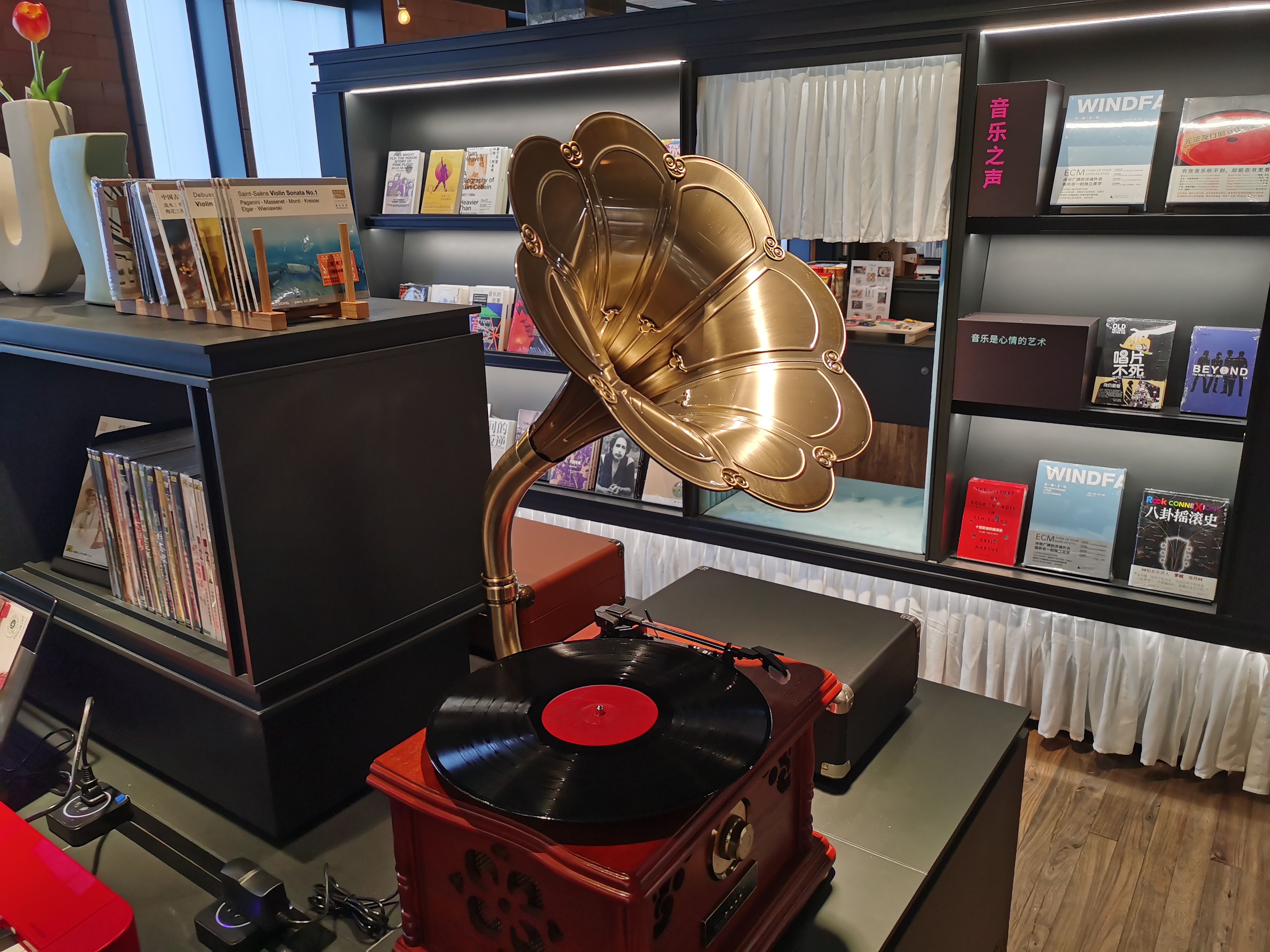 书店的文创选品也以戏剧为主题,包括戏剧魔方、20+1余音刻度尺、电吉他开瓶器、跳跃的琴键、乐器徽章等产品。书店中还有200余种引进文创产品,包括日本文化系列盲盒、意大利品牌Alessandro Coppola的手工琉璃、卡西欧电子乐器、复古黑胶等等。因位于长乐路,店内还为顾客准备了长乐路冰箱贴。