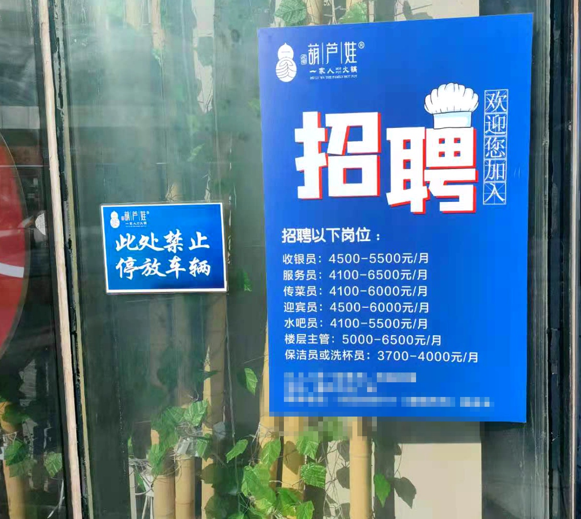另一家名为两个庆火锅公司的火锅店的工作人员也表示,该店的招聘也一直都在进行中。其认为,不仅是火锅店,许多餐饮企业都会长期存在招聘的情况:“餐饮企业员工流动性通常比较大,哪怕没有疫情影响,正常来说都会有招聘,但疫情发生后,招聘难度比之前更大些,不过从目前情况来看,因招不到人而影响整个餐饮店运转的情况还是比较少。”