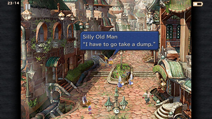 事实证明,我那时是个蠢小子,不懂得欣赏好游戏,这些全新的高清人物模型让我意识到这款游戏中的人物多么异乎寻常又令人愉悦。你扮演史上最强的黑魔法师,四处闲逛,与鱼人、河马人和鼠人交谈。以前,PS1锯齿状的图像掩盖了一些设计艺术,我们现在能更清楚地看到这些人物是什么样的。可惜的是,预渲染的背景图像没有升级,和鲜活的人物形象相比,有些格格不入。