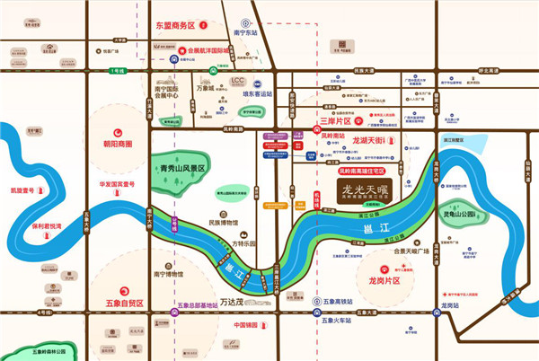 龙光天曜|曜江公馆成为你事业的见证者项目东邻开泰路(建设中),东朝龙岗大桥西望三岸桥,通五象新区北连凤岭南路,南接滨江大道(建设中)交通便利,出行随心尽情畅享商务便捷
