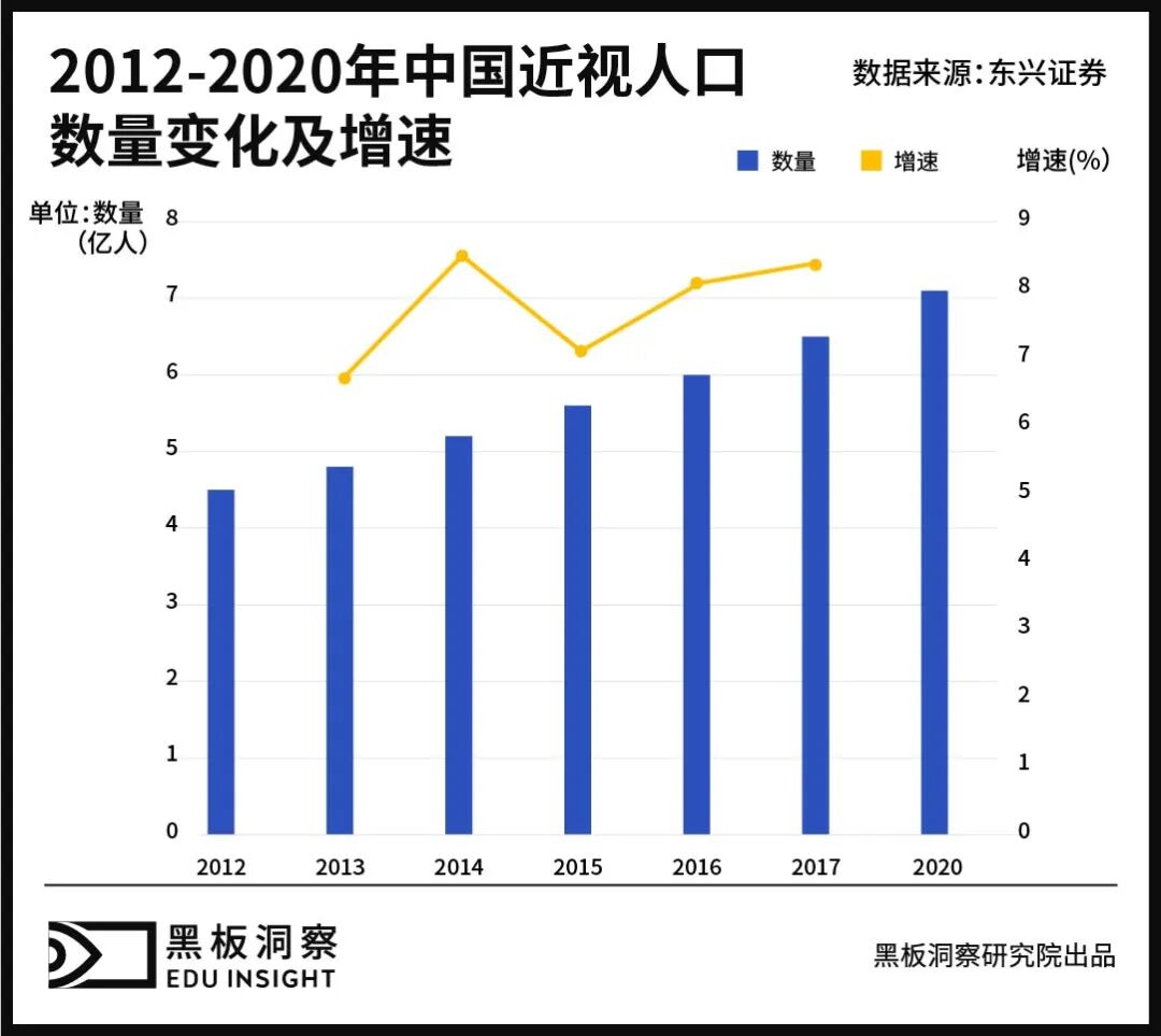 据北京大学国家发展研究院发布的《国民视觉健康报告》显示,在2012年,我国已有4.5亿左右的人患有不同程度的近视,并且当时数据统计的是5岁以上的人群,5岁以下的并未统计在内。2018年,世界卫生组织公布的研究报告显示,我国18年的近视人数已达到6亿之多。六年间,我国近视人数不断攀升,儿童青少年总体近视率过半,其中青少年近视率更是位居世界首位。