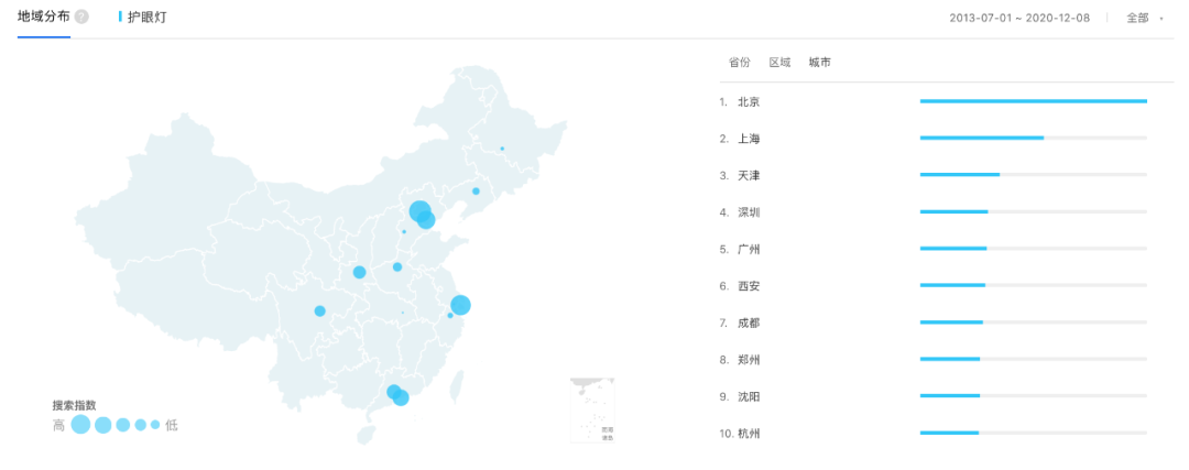 在此背景下,保护眼睛成为当代家长最在意的事情之一。从眼保健操到护眼硬件,护眼灯、护眼仪一个都没有拉下。根据百度指数显示,关注“护眼灯”的人群年龄分布绝大部分在20~39岁之间,千禧一代的80、90后家长成为家庭消费的重要决策者。他们对线上渠道的依赖更为突出,更容易被触动购买,不光是护眼灯,儿童的教育用品、部分学习课程等都更愿意通过线上购买。今年12月,某电商平台上月销量第一的“护眼台灯”已售出5万+。