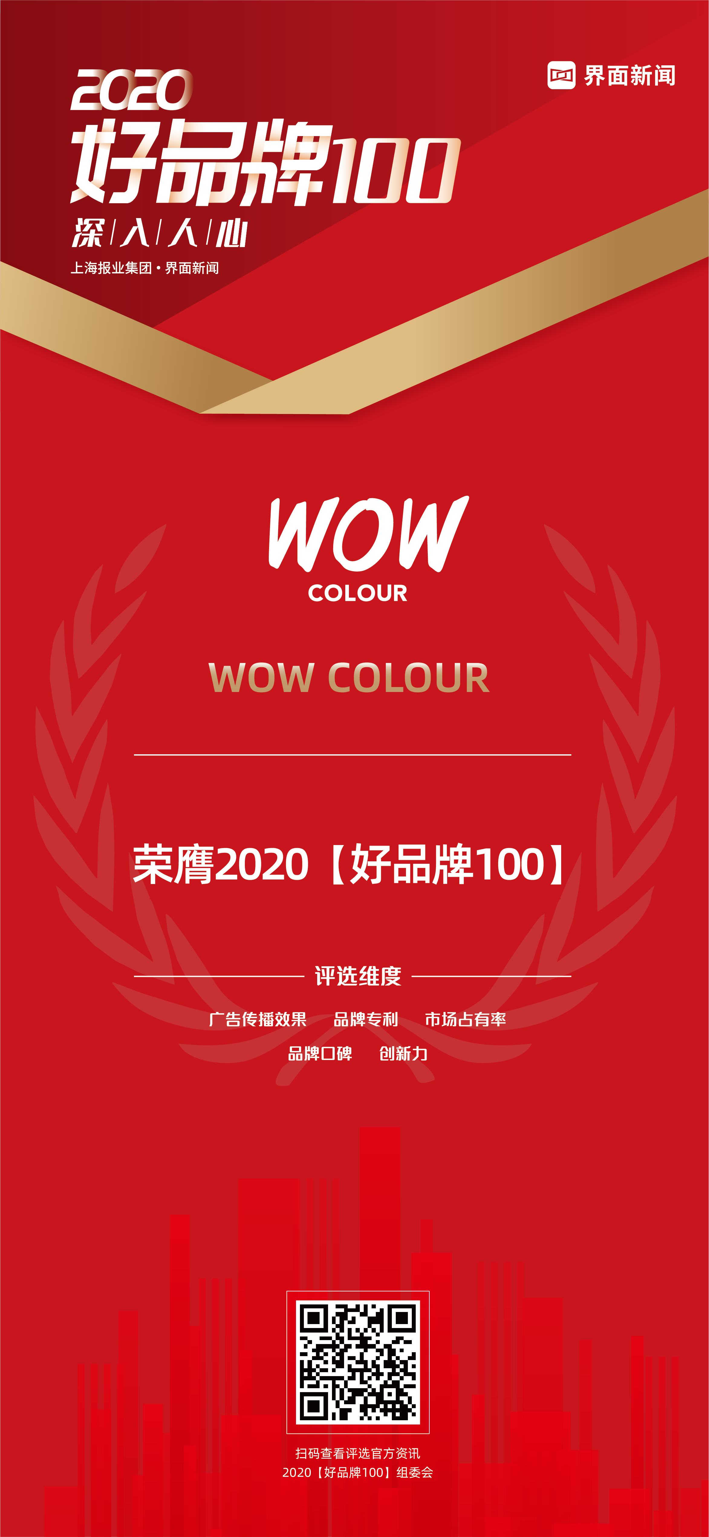 【2020好品牌】通过界面新闻在财经媒体中的领先影响力,秉承专业性与权威性,讲好品牌故事,提升品牌声量,挖掘品牌价值,打造拥有核心竞争力、持续创新、面向国际的“好”品牌。评选通过数据库筛选,网络投票,专家评审等环节,除取各行业中取票数榜首作为100个“好”品牌外,另设提名奖,作为冲刺主榜的品牌激励。