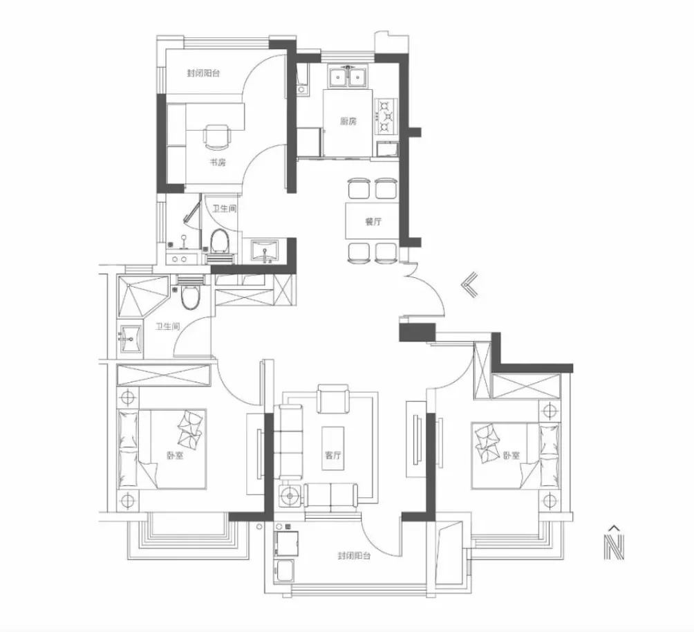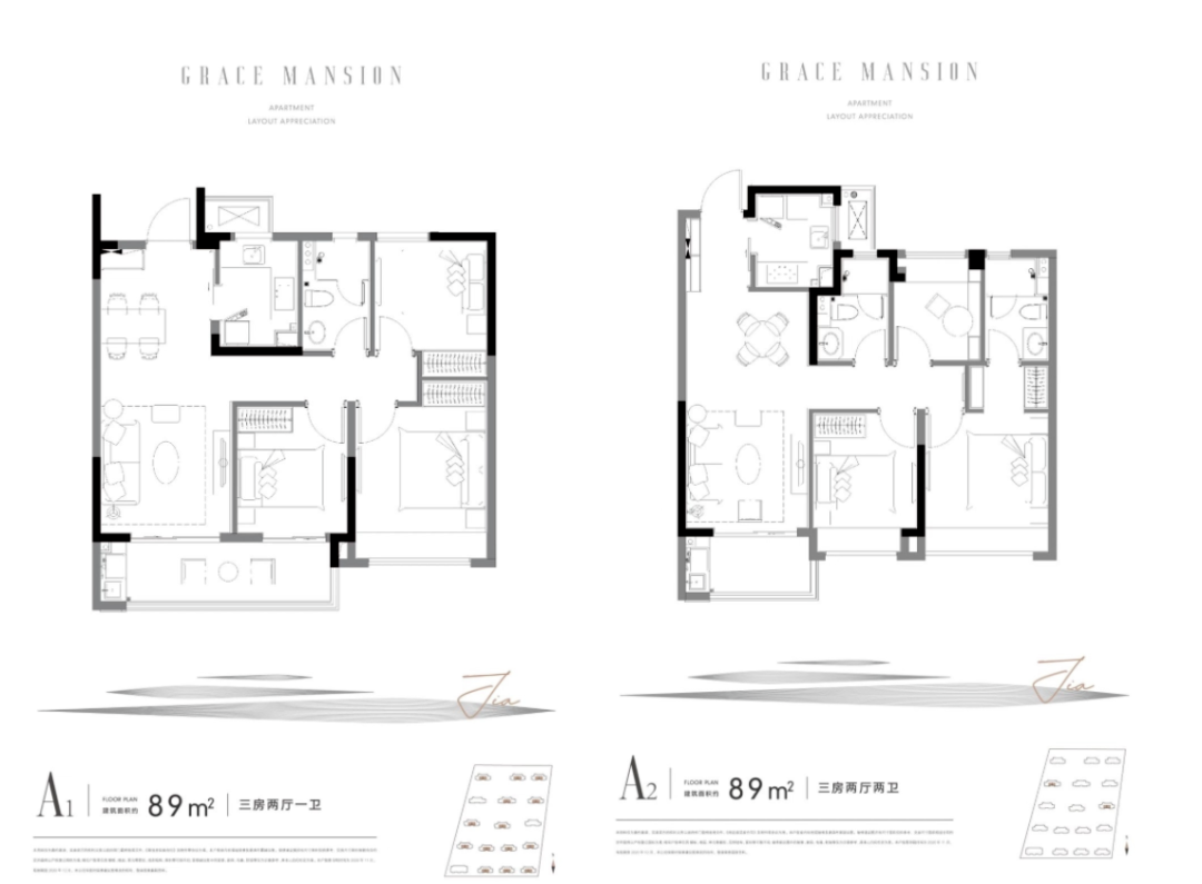 89㎡:有两种,分别为三房两厅一卫、三房两厅两卫
