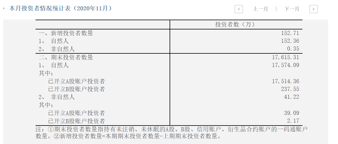 截至11月末,期末投资者数总计17615.31万,同比增长10.83%。今年以来,累计新增投资者已达到1639.92万。
