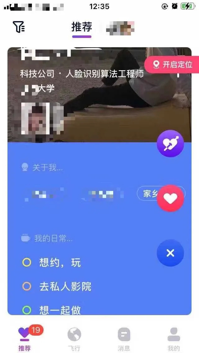 一位科技公司的人脸识别算法工程师,毕业于上海Top2高校,他在个人主页写,「想约,玩,去私人影院,想一起做。」