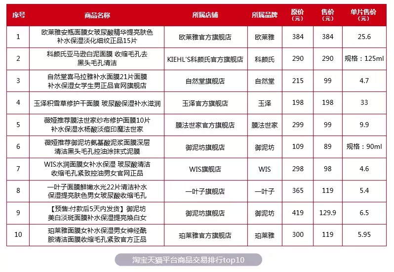 在青眼情报(企业版)发布的《2020年面膜市场调研报告》中,淘宝天猫平台商品交易排行TOP10也未见美迪惠尔的“身影”。