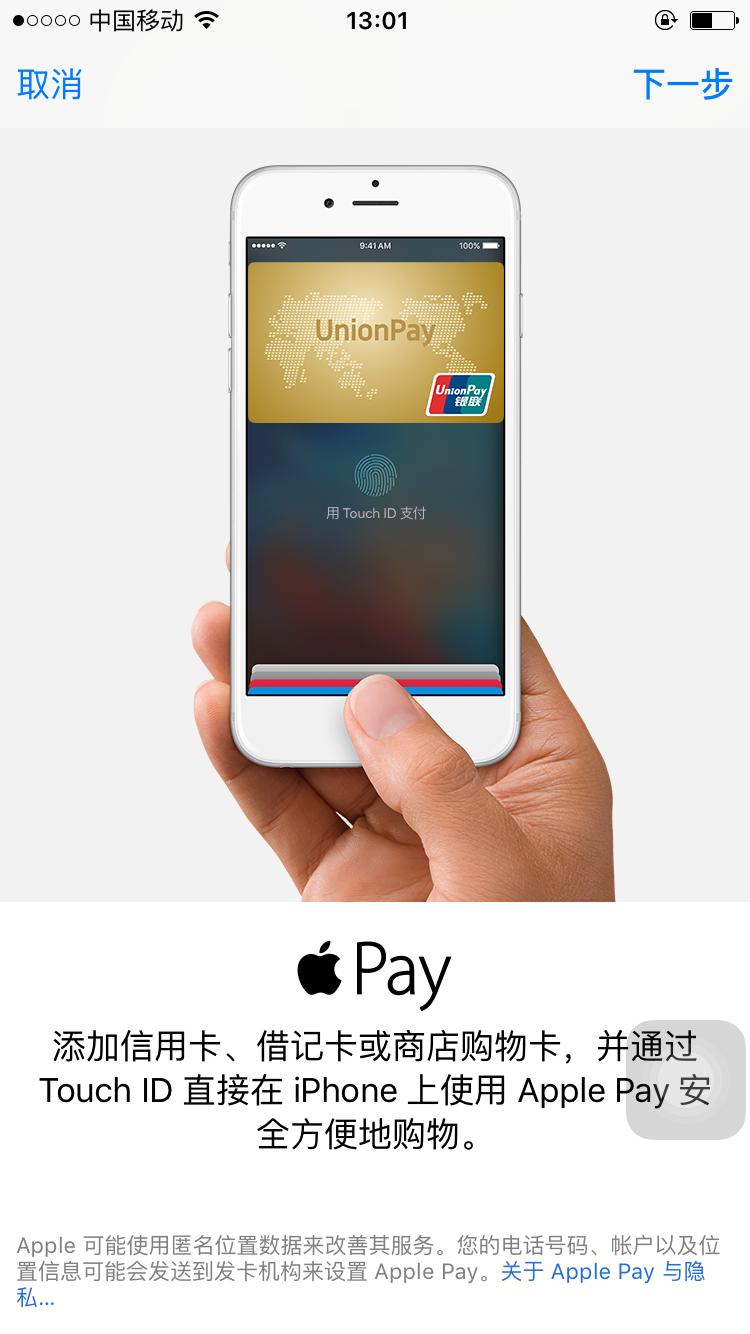 第一步:寻找Apple Pay入口,添加卡片(信用卡/借记卡都OK)