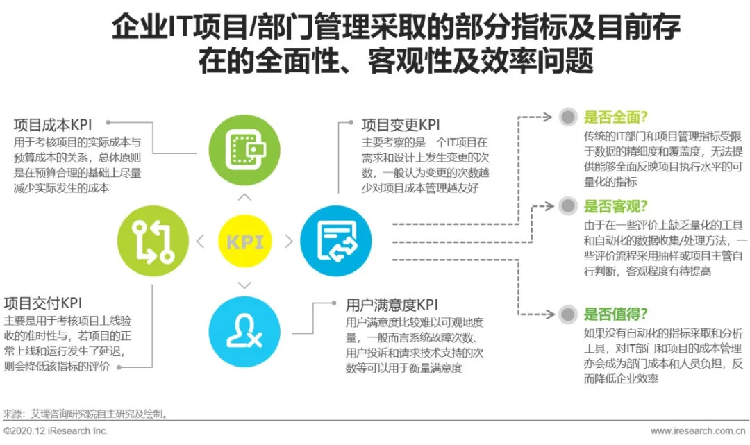 除了IT部门和团队内部的交流协作模式在新经济时代需要作出改变,企业管理层对IT部门的把控和考核方法也亟需革新。尤其是在以应用软件等信息技术已经成为企业业务拓展“基础设施”的大背景下,管理层有必要将IT部门的工作成效纳入其重点考察的对象当中。然而,IT工作的高度专业性往往在业务部门和管理层视野中间竖起一道技术壁垒,使得管理层无法直观地理解和分析IT部门的工作效能,因而也无法进一步为部门工作提出指导性和建设性的意见。在目前的软件开发管理实践中,管理者不断引入可量化的业绩指标来增加IT工作对管理层的透明度,然而这些考核在全面性、客观性、有效性方面仍有提升空间。企业亟需自动化、数量化、可视化的工具来提升IT部门的管理效率。