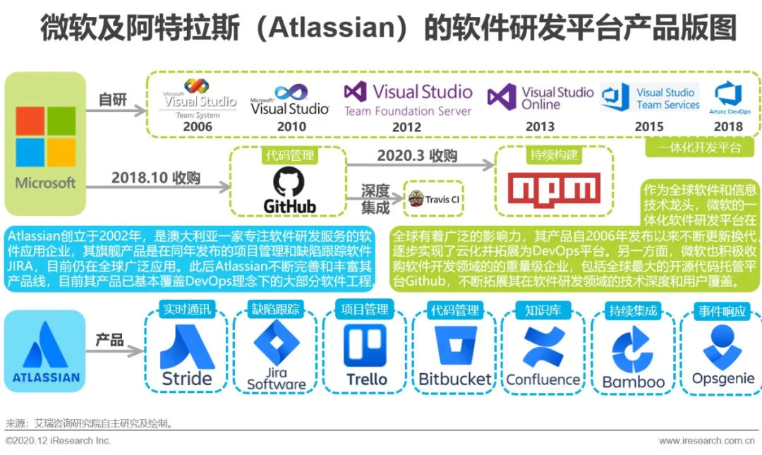 DevOps理念是打通软件工程中各个曾经由独立的团队和不同的软件工具来实现的工作,在对企业文化、管理方式等“软实力”提出新要求的同时,也不断催促着市场打磨出能够提供相应的生产力和创造性的软件研发工具,集成度更高、生态系统更完整的工具链将成为这一行业未来大趋势:信息技术龙头微软不断丰富其自有的一体化研发平台产品,并通过收购相关企业的方式来扩大其生态影响力,而JIRA的母公司Atlassian也不断完善其DevOps生态,打造为软件开发者提供“一站式”服务的能力。