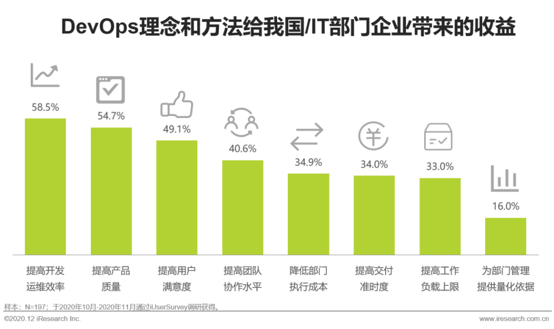 软件开发和运营并非传统行业的主营业务,因而整体上缺乏相应的人才和软硬件基础设施,正因如此这类企业和机构的数字化水平整体较低。在我国数字化转型的大趋势下,找到适合企业的高效数字化转型道路将意味着在市场竞争中取得先机;对于政府部门而言,将能够更好地构建数字政府和数字政府服务体系,提高地区乃至全国的信息化基础设施水平。在传统行业中,金融和能源等行业由于资金充足、技术实力相对领先,且对于各类软件和在线应用的需求较高,在传统行业中走在数字化升级的前列,也是率先引入DevOps方法和工具的行业。而新零售、智能制造等近年来逐步兴起的互联网+行业也正在积极拓展互联网能力构建渠道以及市场优势。