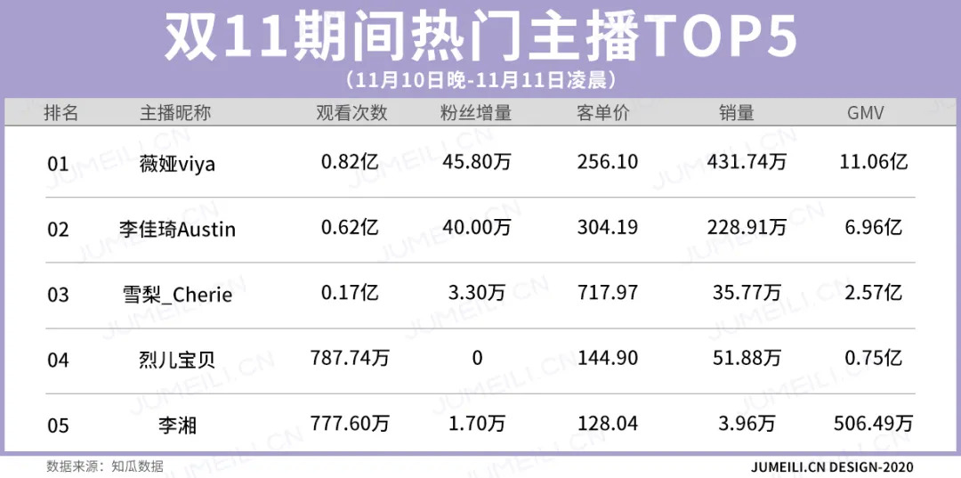 李佳琦和薇娅两大巨头地位依然不可撼动,伴随预售当日李佳琦+薇娅80亿销售额的神话,关于今年双11直播的话题度和关注度一时被推到高潮。甚至有不少商家表示:“上不了李佳琦和薇娅的直播间,这个双11就甭做了。”
