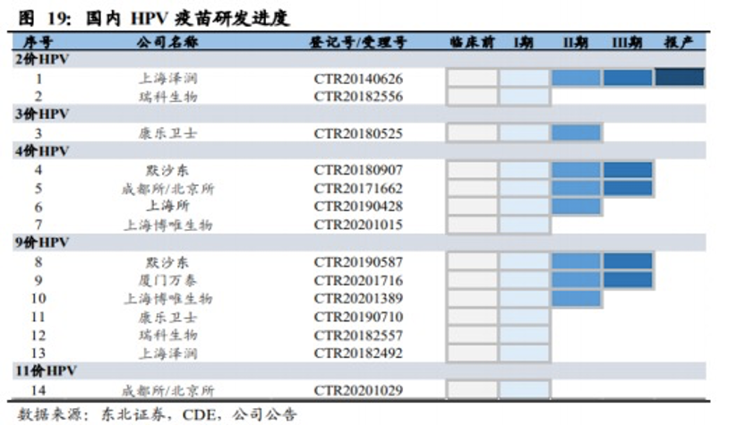 与此同时,还有一批“后来者”正在虎视眈眈,比如康乐卫士的三价HPV疫苗、国药北京所和成都所的四价HPV疫苗、默沙东九价HPV疫苗的年龄段拓展都已获得III期临床批件或启动III期临床。