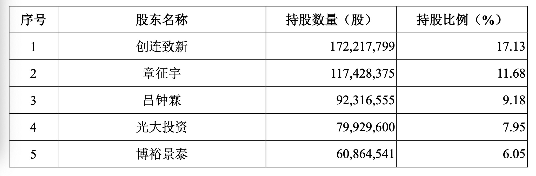 除章征宇之外,持有公司股份比例 5%以上的主要股东为吕钟霖、杭州创连致新投资合伙企业(有限合伙)、天津光 大创新科技投资中心(有限合伙)(下称“光大投资”)、博裕景泰(上海)股 权投资合伙企业(有限合伙)以及宁波红杉臻盛股权投资合伙企业(有限合伙)。