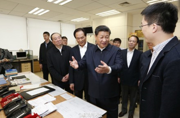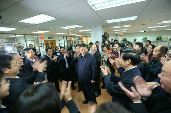 习近平还到国内部总编室同采编人员交流。编辑部负责人向总书记介绍了稿件审发流程和业务建设情况。几位刚参加新春走基层采访的记者你一言我一语汇报了采访见闻。总书记鼓励大家要接地气,多采写群众喜闻乐见的新闻报道。