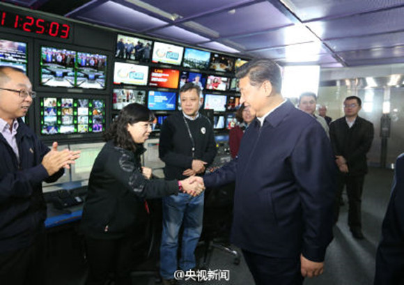 19日上午,习近平在中央电视台调研,来到总控中心同位于华盛顿市中心的北美分台视频连线,了解分台建设运行情况。当得知分台成立4年,每天提供5小时、全自制的节目,90%的工作人员来自当地,习近平对此表示肯定,向分台全体人员致以亲切问候和良好祝愿。