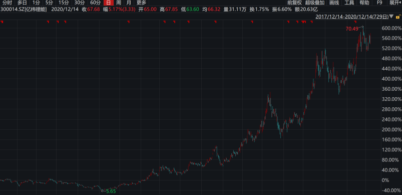 图6:亿纬锂能近2年股价最大涨幅超10倍,资料来源:Wind