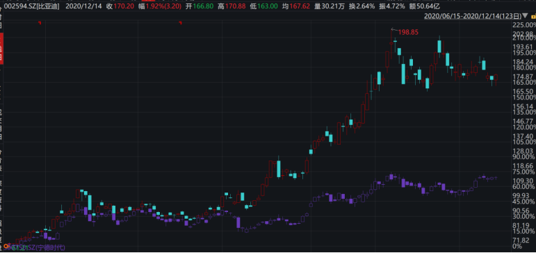 根据比亚迪的发布会,比亚迪的刀片电池是基于磷酸铁锂,主打安全性和低成本,这两点都非常符合车企的期望。靠技术路径另辟蹊径的比亚迪绝地反击后,也终于在股价被宁德时代摩擦近两年后,在近半年扬眉吐气。