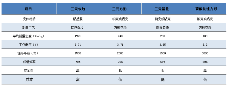 图7:软包、方形、圆柱三大类型动力电池比较,资料来源:公司招股说明书