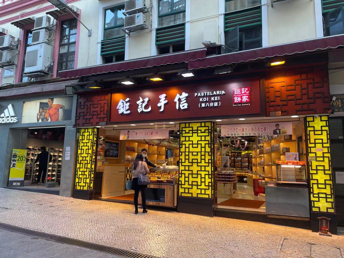 对人气感受最深的可能是商家。位于大三巴街23号的钜记手信,曾经最热闹繁忙的网红店铺之一,距牌坊一步之遥,此时店里的猪肉干正在打折促销,但门前看不到排队,事实上,店员有时候比顾客还多。当被记者问起今年疫情的影响,销售额能达到去年的几成时,店员直摇头,表示“没法比,没法比”。