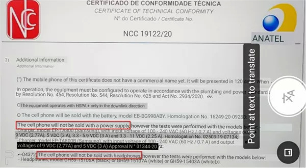 根据巴西网站Tecnoblog报道,三星在巴西最近通过ANATEL认证的Galaxy 21系列手机将不再附赠充电器。巴西的ANANEL相当于国内的工信部,取消的消息可以说是准确无误的了。