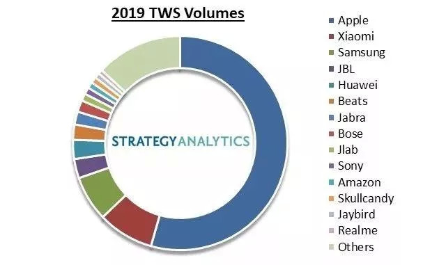 而根据trategy Analytics研究报告中的数据,2019年 Air Pods的销量达到了惊人的6000万部。仅仅三年,苹果就将蓝牙耳机的风潮吹遍了世界,也让自己赚的盆满钵满。
