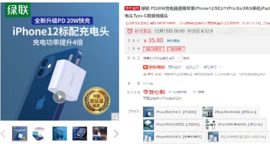 而价格方面,则是专注配件的第三方的拿手好戏。以绿联为例,同样是20W的充电器,iPhone官方的价格几乎是绿联的三倍,而两者在使用体验上,几乎没有区别。而绿联65W充电器,只需要苹果20W一半的价格。