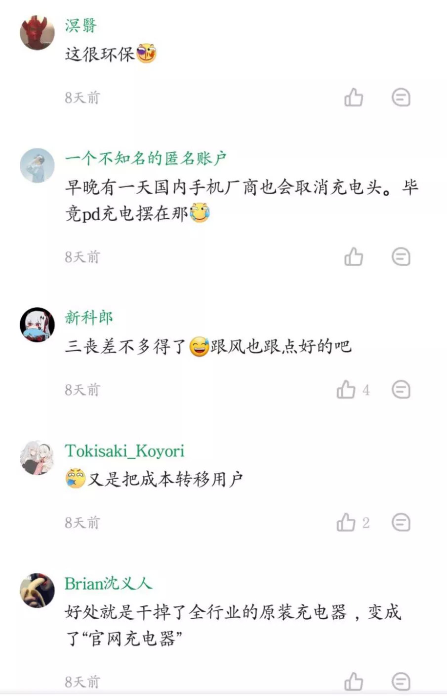 取消充电器,对他们来说是一个很“香”的决定,而对国内厂商来讲,目前跟风的动力尚且不足。