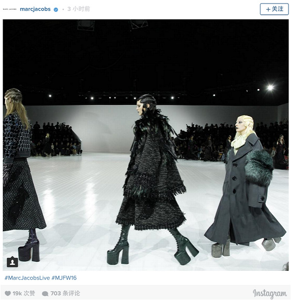 Gaga 来了!只要你的朋友圈中有一、两位时装精,就很难错过她在 Marc Jacobs 2016 秋冬秀台上的精彩表现。和格莱美红毯上的那个红发蓝裙造型截然不同,以模特身份登场的 Lady Gaga 穿着 Marc Jacobs 最新系列中一款墨绿色宽松大衣,手肘裹着一大圈绿色皮草。