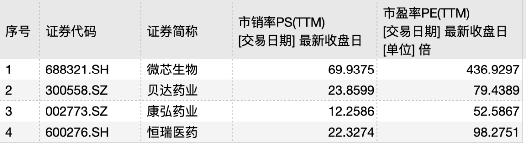 上市之初,微芯生物市值一度突破400亿元,接近康弘药业和贝达药业,实际目前公司市盈率和市销率分别高达437倍和70倍。市场对创新药“慷慨”的定价可能是基石投资人选择减持的原因之一。