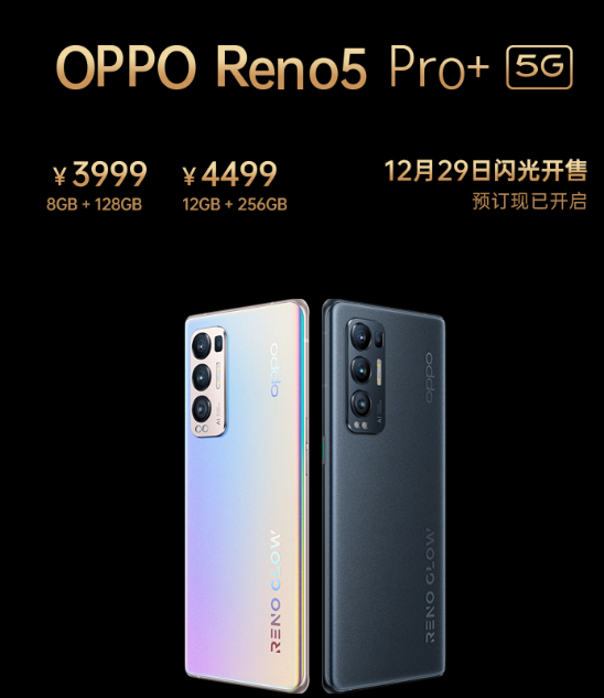 据OPPO微信公众号消息,OPPO Reno5 Pro+将于12月29日开售,现已开启预定,售价3999元起。