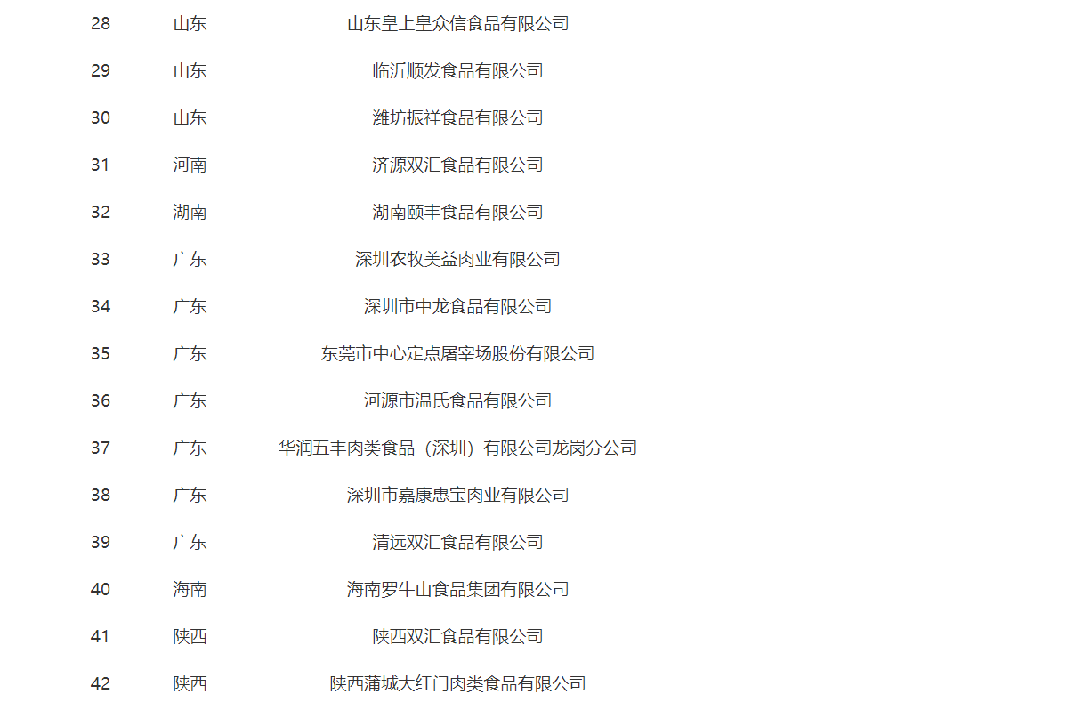 《通知》提到,根据《农业农村部办公厅关于深入推进生猪屠宰标准化创建工作的通知》(农办医〔2018〕26号)要求,各地按照质量管理制度化、厂区环境整洁化、设施设备标准化、生产经营规范化、检测检验科学化、排放处理无害化的总体要求,经屠宰企业自愿申请、省级遴选、部级专家审查及评审,现确定北京二商大红门五肉联食品有限公司等42家企业为全国生猪屠宰标准化示范厂并颁发标牌。请各地强化对标准化示范厂的监管与指导,切实发挥示范带动效应,全面提高屠宰行业标准化水平,提升肉品质量安全保障能力。