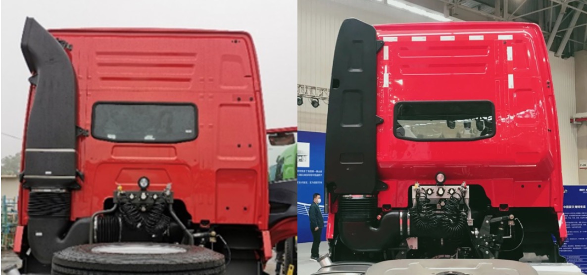升级款的豪沃T7H-V牵引车,驾驶室采用鼓后围设计,车辆下卧铺宽度由原先的935mm增至1100mm,进一步提升了驾乘舒适性。此外,豪沃T7H-V驾驶室还配有专属新型进气道,造型更加美观,与驾驶室本体无缝隙贴合。