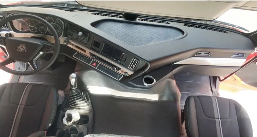豪沃T7H-V牵引车拥有全新的仪表台,软材质包装,手感细腻,16键多功能真皮方向盘,使车辆操控更加便捷,手机支架安放处、水杯架和移动烟灰缸等贴心设计,更富人性化。主副座椅采用全新配色,更契合用户舒适、抗污需求。