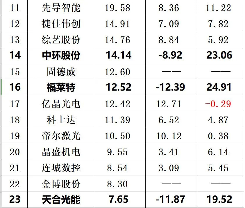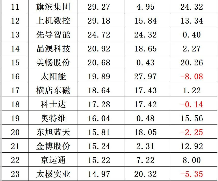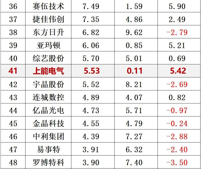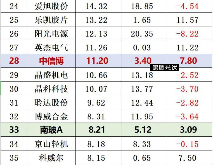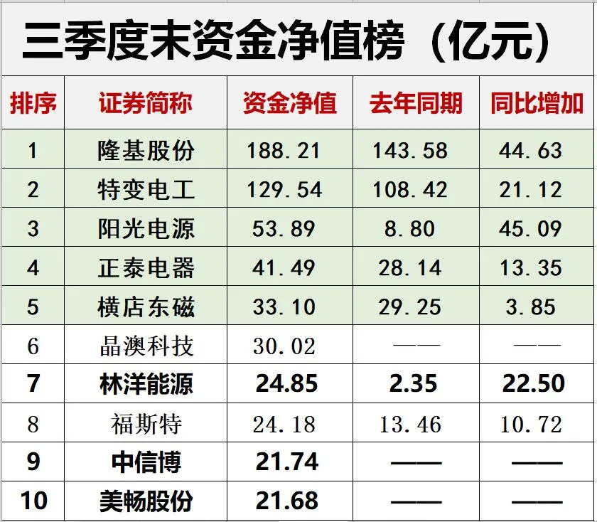 另外,三家新登陆A股的光伏企业也强势进入资金净值榜前十名,它们是晶澳科技(资金净值30.02亿元)、中信博(21.74亿元)和美畅股份(21.68亿元),分别位列榜单第六、九、十位。