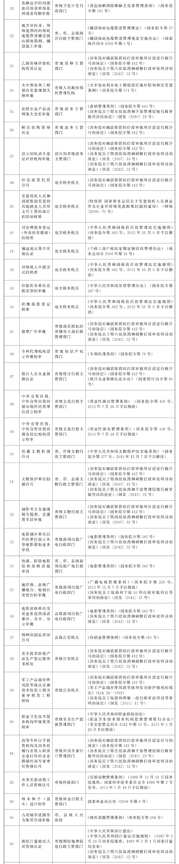 在第二批取消的152项中央指定地方实施行政审批事项中,依据法律、法规和国务院决定设定的有65项;依据部门规章、规范性文件设定的有87项,涉及33个部门。《决定》同时要求各地区、各部门抓紧做好取消事项的后续衔接工作,切实加强事中事后监管,特别是涉及安全生产和维护公共安全的,要细化措施,明确责任主体和工作方法。