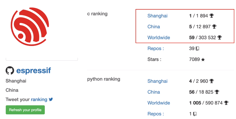 乐鑫科技是物联网Wi-Fi解决方案专业供应商,专注于物联网Wi-Fi MCU通信芯片及其模组的研发、设计及销售。在芯片领域,终端市场存在大量的小厂商有特定需求,因此需要代码开发者对芯片进行开源项目。在世界上最大的代码托管平台GitHub上,针对乐鑫科技两款芯片ESP8266和ESP32的开源项目分别超过2.7万个和1.5万个。在GitHub的C语言贡献度方面,乐鑫科技排名中国第5,其中阿里巴巴排名第3,三六零集团排名第6。