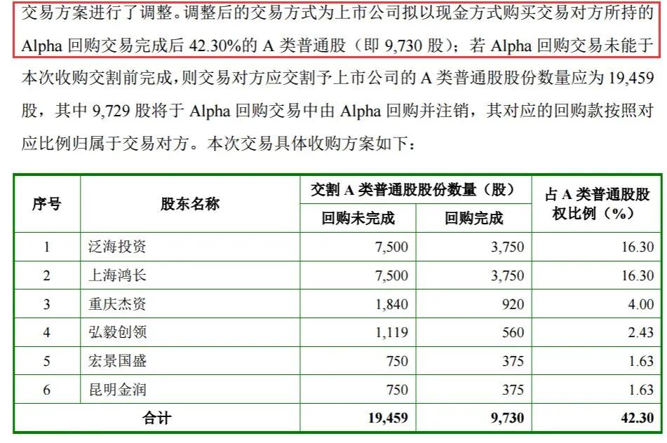 2018年,史玉柱受到威胁后,巨人网络重新调整收购案。一年后,方案由发行股份收购变更为现金收购,原计划收购100%标的公司Alpha的A类普通股变更为只收购42.30%。这次收购,也刚好绕开了股权占比达21.74%的郁国祥。