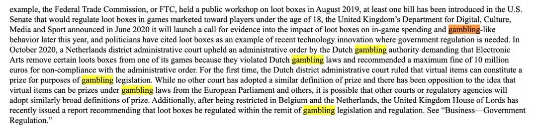 2020年10月,荷兰地方行政法院维持了荷兰赌博当局的一项行政命令,要求Electronic Arts从某些游戏中移除某些掠夺盒,因为它们违反了荷兰赌博法,并建议最高罚款1000万欧元。