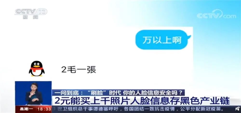 2020年10月,央视新闻报道,在某些网络平台上花2元钱就能买到上千张人脸照片,5000张人脸照片还不到10元。消息一出,一度引发人们对人脸识别应用、人脸信息采集的担忧。