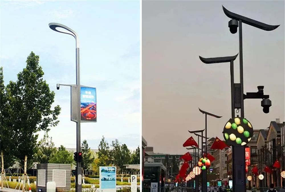 市面上的智慧路灯杆大多汇集灯光控制、智能摄像头、LED屏幕显示、5G基站、智慧报警等多种功能于一身,并通过“多杆合一”使道路变得更加整洁,成为城市中一道靓丽的风景线。