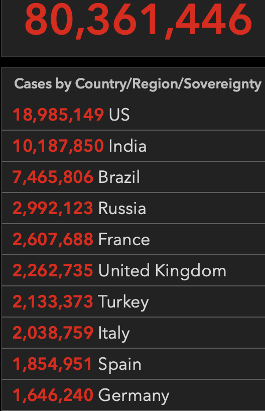 0800【全球累计新冠确诊病例超8036万】