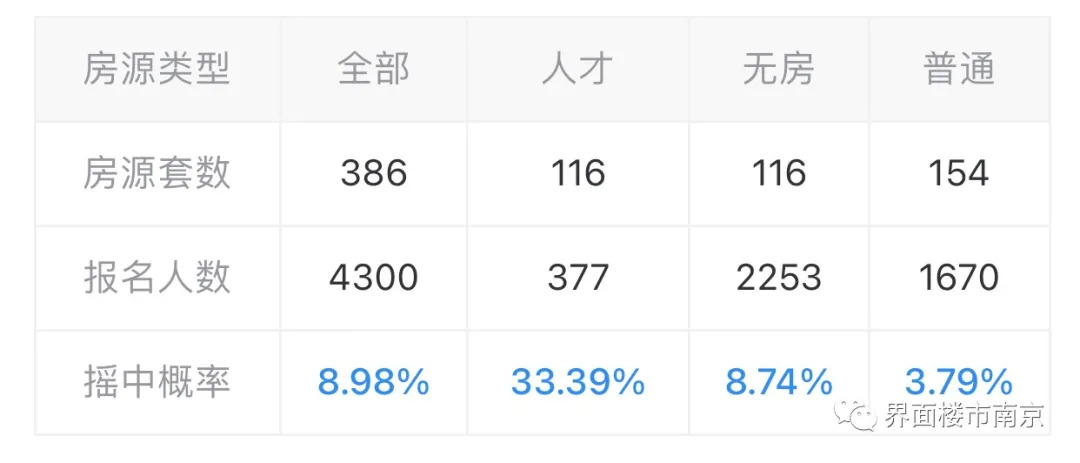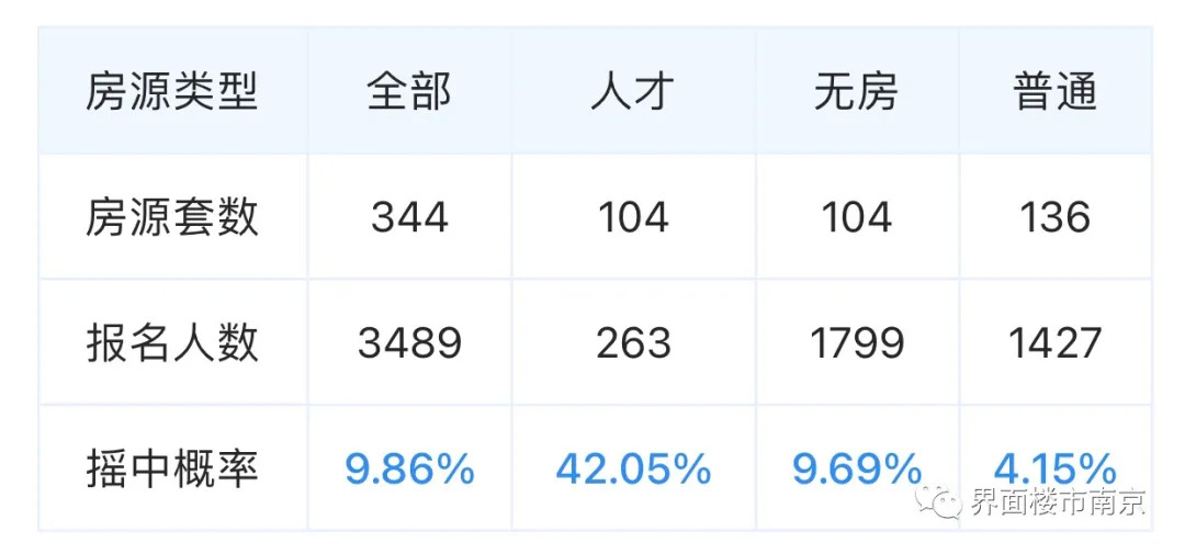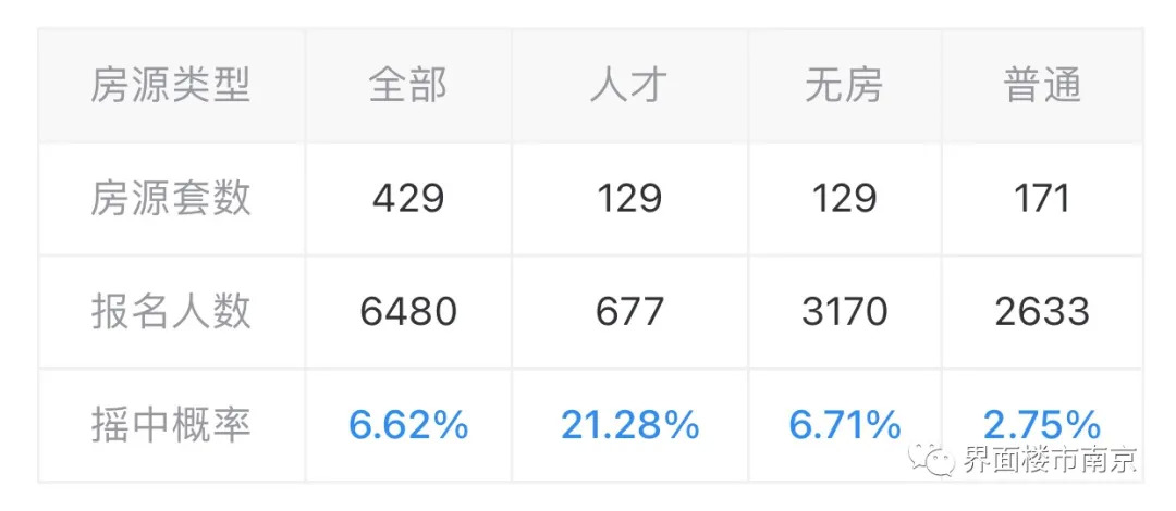 昨晚,江北核心区纯新盘-大华云江印月报名摇号清册出炉,项目暂定于12月28日12时在南京公证处开始公证摇号,本次摇号人才房共677组买房人报名,无住房家庭保障房共3170组买房人报名,普通住房共2633组买房人报名。整体初步中签率约6.62%。